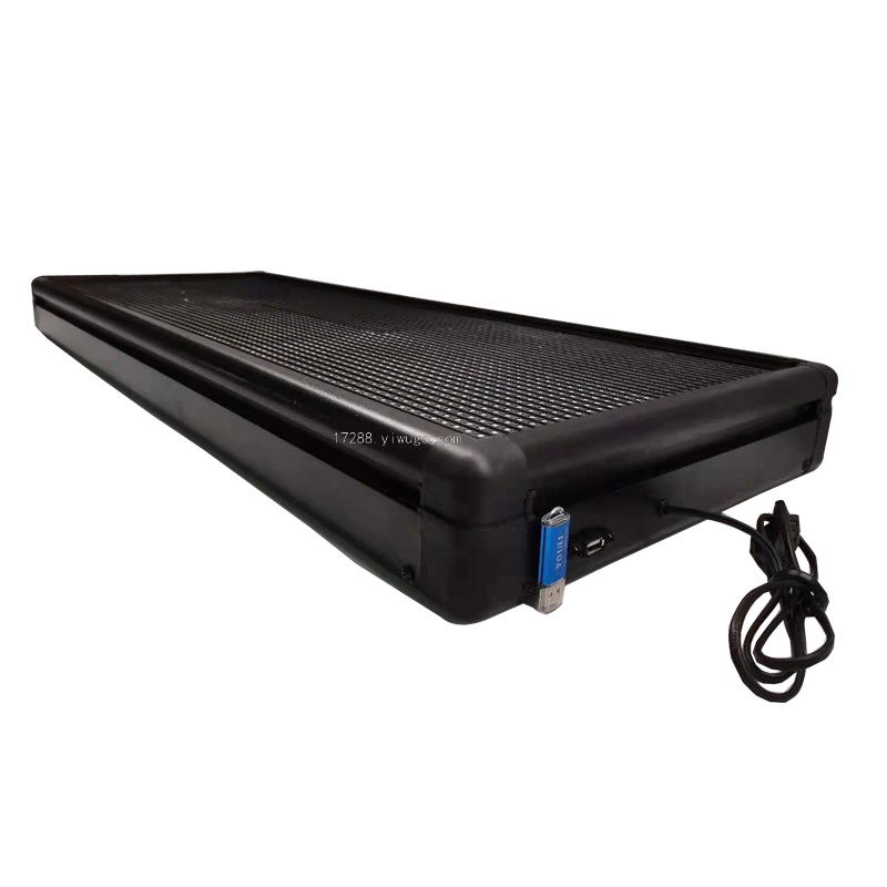 Puteți programa panoul LED într-un mod simplu și rapid utilizând o conexiune USB la computer și software-ul inclus. Datorită memoriei Flash integrate în dispozitivul LED, puteți stoca zeci de mesaje în același timp. Ecranul LED de 68 cm x 17,5 cm oferă 2 linii pentru crearea de text sau 1 cu fonturi mai mari pentru o mai bună lizibilitate de la distanță. Ecranul LED acceptă limbi mondiale și oferă, de asemenea, diverse setări pentru mesajele text, cum ar fi o selecție largă de tipuri de fonturi, viteza afișării (derularea textului), textul color în șapte culori, plus până la 45 de efecte – zăpadă, stropire, rotire, defilare, intermitent, static, text la stânga, text la dreapta. Mesajele de pe afișajul LED multifuncțional, cu ajutorul efectelor, vor deveni foarte atractive în scopuri publicitare și informative. De asemenea, este posibil să se afișeze ceasuri sau imagini mici pe afișajul LED.